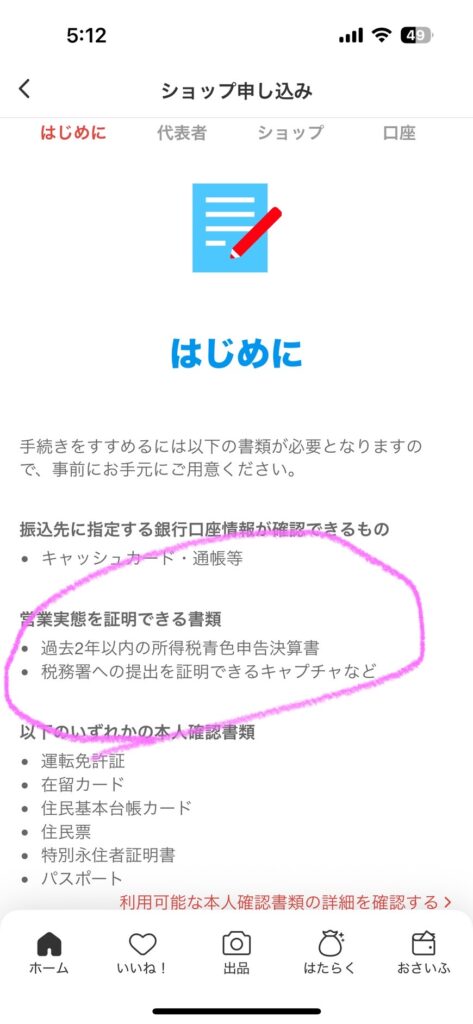 ↑試しにメルカリショップに申し込もうかなと思って公式の案内ページを開いたら、前に確認した時よりも格段に厳しくなっておりました…。